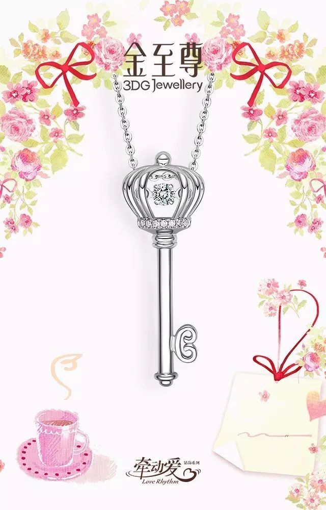 純潔的鉑金,精致的鉆石,結(jié)成一把潔白的鑰匙。垂于頸部,鉆石閃耀帶來靈動優(yōu)雅,時刻散發(fā)著耀眼奪目的光芒。金至尊珠寶「牽動愛 Love Rhythm」鉆飾系列,見證獨屬于你和小哥哥的浪漫一刻。