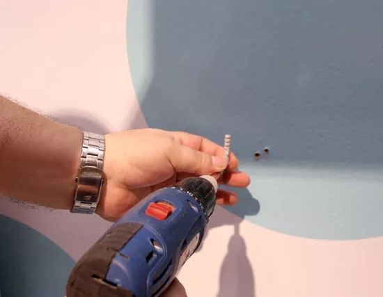使用沖擊鉆在墻面上鉆孔,孔的深度與后面用到的螺絲釘?shù)拈L(zhǎng)度大致相同。