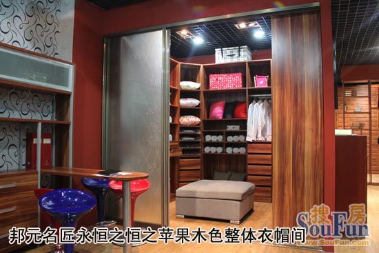 今天,搜房網(wǎng)測(cè)評(píng)員為大家推薦的產(chǎn)品就是一款美觀、簡(jiǎn)約、實(shí)用、儲(chǔ)物空間豐富的整體衣帽間——邦元名匠永恒之恒系列(全板系列)之蘋果木色整體衣帽間。