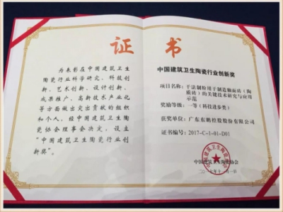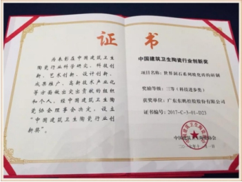 為鼓勵(lì)中國建筑衛(wèi)生陶瓷行業(yè)創(chuàng)新,表彰在中國建筑衛(wèi)生陶瓷科學(xué)研究、科技創(chuàng)新、設(shè)計(jì)創(chuàng)新、成果推廣、高新技術(shù)產(chǎn)業(yè)化等方面做出貢獻(xiàn)的企業(yè)和個(gè)人,共授予十七個(gè)項(xiàng)目“中國建筑衛(wèi)生陶瓷行業(yè)科技創(chuàng)新獎(jiǎng)”。