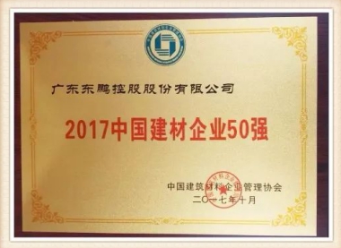 2017年10月,廣東東鵬控股股份有限公司獲得中國建筑材料企業(yè)管理協(xié)會(huì)授予的“2017 中國建材企業(yè) 50 強(qiáng)”和“2017中國民營建材企業(yè)10強(qiáng)”兩項(xiàng)榮譽(yù)稱號(hào)。