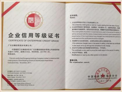 廣東東鵬控股股份有限公司榮獲第十批中國建筑陶瓷、衛(wèi)生潔具行業(yè)企業(yè)信用評價(jià)AAA級企業(yè)榜單