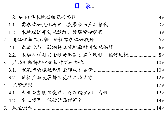 我們認(rèn)為在人口“老幼化”推動下,木地板行業(yè)景氣度逐漸復(fù)蘇,未來10年地板將反過來替代瓷磚材料,因此我們推薦國內(nèi)地板龍頭企業(yè)大亞圣象(000910.SZ)最受益:
