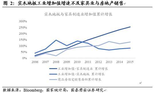 2010年后木地板一定程度上被瓷磚替代。我們觀察到近年來中國木地板銷售有所放緩,從2006年-2015年的數(shù)據(jù)來看,國內(nèi)家具制造業(yè)工業(yè)增加值跟隨地產(chǎn)銷售高速增長,而實木地板工業(yè)增加值增長卻在2010年后明顯放緩。由于地板與瓷磚是國內(nèi)最重要的兩種地面裝飾材料(住宅市場中二者合計占比超過90%),因此可以推測2010年后瓷磚產(chǎn)品對地板產(chǎn)品產(chǎn)生了一定替代。