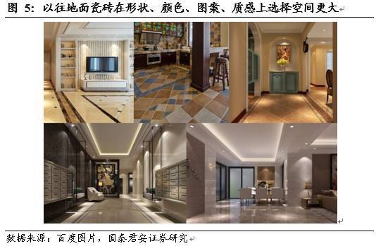 ②產(chǎn)品質(zhì)量優(yōu)勢:相對于地板,地面瓷磚在外觀設(shè)計上具有較多的色彩、圖案、形狀等可以供消費者選擇,并且瓷磚在導(dǎo)熱性,耐磨性,環(huán)保性(無甲醛)等方面有天然優(yōu)勢,造成對地板替代。