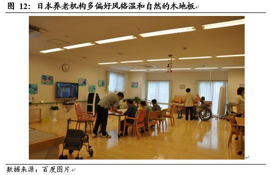 在養(yǎng)老事業(yè)較為成熟發(fā)達(dá)的日本,建設(shè)較好的養(yǎng)老建筑均采用清新自然的建筑風(fēng)格,在材料上盡量選用木材材料,而在地面材料上也較為偏好木質(zhì)地板。