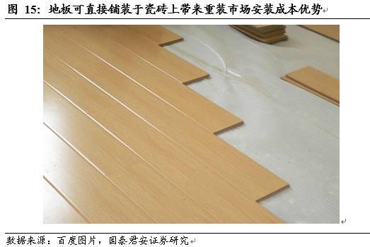 在人口結(jié)構(gòu)變化趨勢導(dǎo)致地板消費需求偏好提升的大背景之下,木地板產(chǎn)品升級將加速對瓷磚的替代進(jìn)程:在地產(chǎn)后市場的時代,我們認(rèn)為重裝需求崛起的背景下,瓷磚裝配成本明顯高于地板,將導(dǎo)致消費者偏好轉(zhuǎn)向后者;而地板在產(chǎn)品近年在耐磨性,導(dǎo)熱性,環(huán)保性,產(chǎn)品多樣性等方面的升級也將壓縮瓷磚的相對競爭優(yōu)勢。