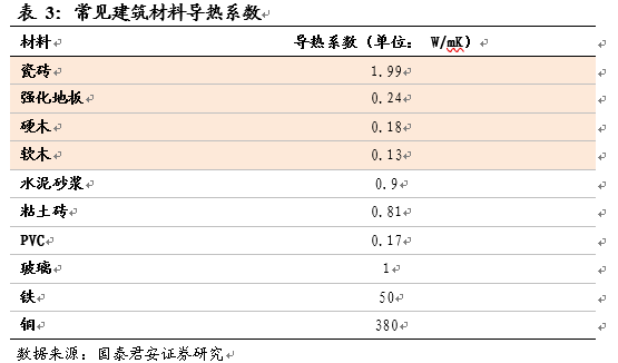 對于身體較為虛弱的老年人群而言,對室內(nèi)“冬暖夏涼”的要求較高,因此對建筑材料的保溫性有很強的需求;而對于幼童而言,少兒著涼尤其是足部容易誘發(fā)多種疾病。由于少兒平時活動量大,身體尤其足部與地面材料接觸頻次較高時間長,因此地面材料需要保持一定溫度變得尤其重要。在保溫性來看,木地板導(dǎo)熱系數(shù)大幅低于瓷磚水平,因此更容易受到消費者青睞。