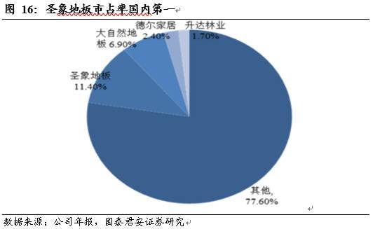 地板已經(jīng)屬于消費品建材類產(chǎn)品,經(jīng)過多年耕耘,圣象品牌已經(jīng)成為地板行業(yè)的絕對龍頭企業(yè),市占率約11%,是第二名大自然地板的2倍,地板龍頭品牌已經(jīng)深入人心。