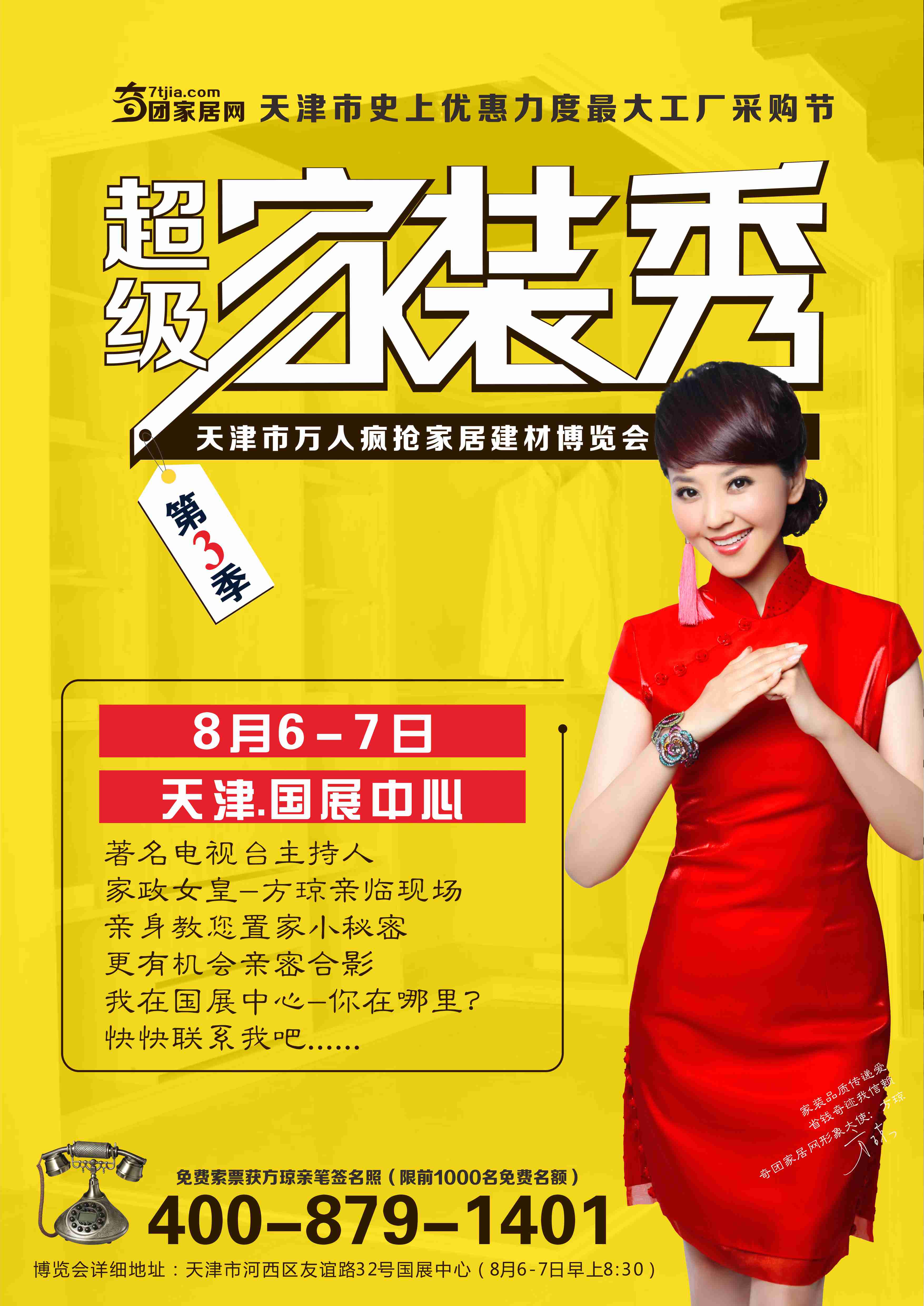 天津8月6.-8.7日國展中心,明星“方瓊”親臨現(xiàn)場!全天津最大,百家一線大品牌參加,超過3000種特價品供挑選!40個衣架只需要1塊錢,家用馬桶299起!家里2年內(nèi)有裝修需求的,有換新需求的,有添置物品需求的,都值得去看看!簽到還送百元電話卡,已有萬人報名!