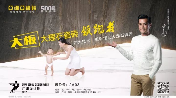11月27-29日,2017廣州設(shè)計(jì)周即將在琶洲·保利世貿(mào)博覽館盛大開(kāi)展。亞細(xì)亞瓷磚也將攜帶2017年度明星產(chǎn)品,與五大主題展館的10000+“設(shè)計(jì)+選材”精品同臺(tái)爭(zhēng)艷。最最最值得關(guān)注的是—— 55°柔光大板大理石瓷磚 即將在廣州設(shè)計(jì)周驚艷亮相。2017年,「大板」相繼在國(guó)內(nèi)各大城市專賣(mài)店、展會(huì)、城市論壇登場(chǎng),所到之處,目光所及,這款年度Super Icon即將燃爆廣州。