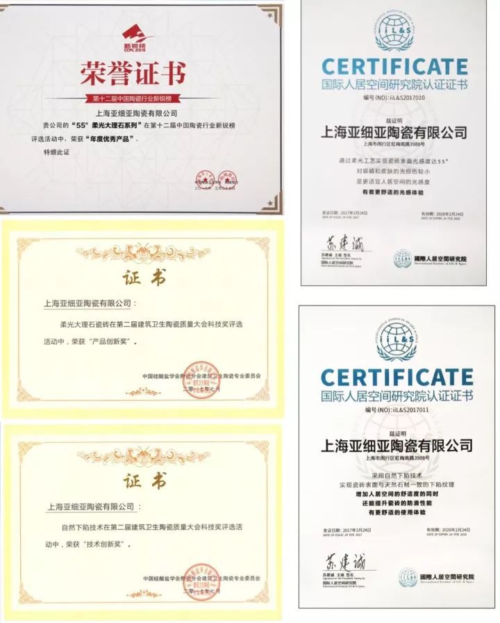 獨(dú)立創(chuàng)新的四大技術(shù),推進(jìn)行業(yè)重新定義了大板大理石瓷磚。相較目前市場(chǎng)上其他的大板大理石,亞細(xì)亞大板系列產(chǎn)品集55度柔光、立體下陷、全通體、大規(guī)格一體,打響了國(guó)內(nèi)大板大理石領(lǐng)域的第一炮!專利技術(shù)及產(chǎn)品獲得國(guó)際人居空間研究院、中國(guó)陶瓷工業(yè)協(xié)會(huì)、中國(guó)硅酸鹽學(xué)會(huì)陶瓷分會(huì)首肯,獲獎(jiǎng)無(wú)數(shù)。