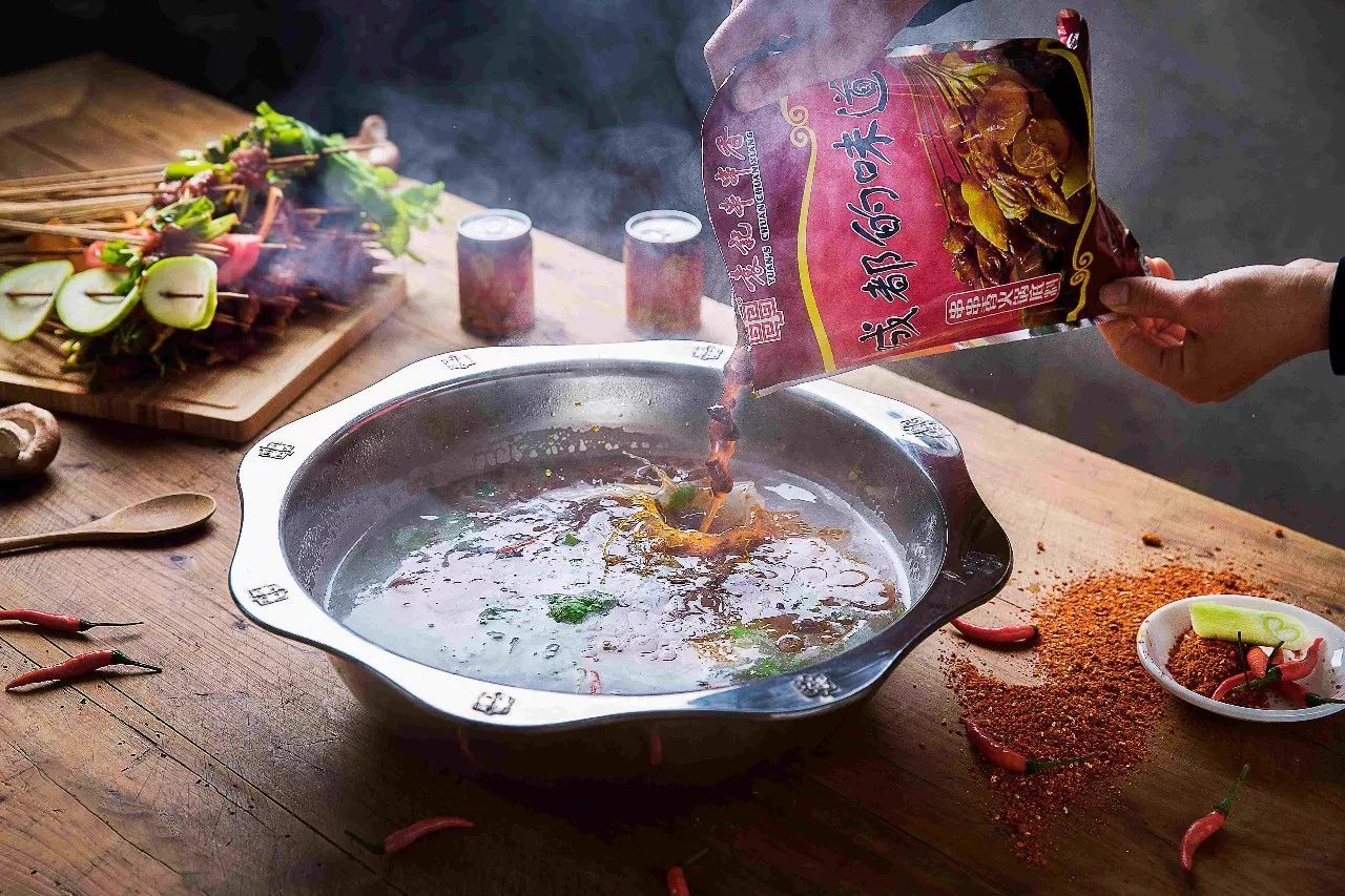 袁記串串香一次性袋裝底料,采用獨立包裝,在精美的包裝袋里,是袁記傳人按照宮廷秘方,采用四川菜油、牛油、郫縣豆瓣、干辣椒、生姜、大蒜、大蔥,輔以冰糖、醪糟汁、八角、三奈、桂皮、小茴香、草果等幾十種調(diào)味品,經(jīng)過十幾道繁復(fù)工序,熬制數(shù)小時而成。