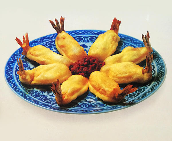 對(duì)蝦作法有數(shù)種,無(wú)論油燜、炸烹、軟炸都美味可口,「鳳尾大蝦」則屬于軟炸一類。