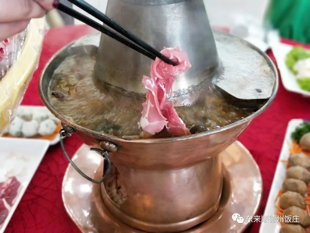 傳統(tǒng)的銅火鍋再加上刀工精美的牛羊肉,選擇這里就是賺到了
