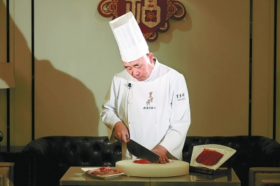 一天又一天反復(fù)切肉,陳立新的兩條胳膊變得粗細(xì)不一,而經(jīng)常在溫差大的環(huán)境中轉(zhuǎn)換,他的兩條腿風(fēng)濕變形,不能久站。可是一拿起刀,他就忘了這些病痛,經(jīng)常一氣兒切四個鐘頭的肉不帶喝一口水的。說起教他學(xué)藝的東來順老師傅,陳立新心里充滿了感激,“老一輩手藝人文化不高,技藝全靠口傳心授,可他們傳承的那一顆匠心,是老字號最大的財富。”