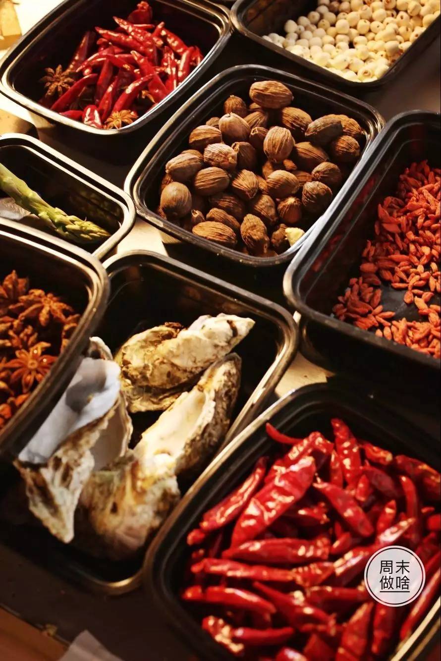 小船上搭載著來自內(nèi)蒙草原的羔羊肉,和小肥羊火鍋湯底藥食同源的調(diào)味料精髓:枸杞、八角茴香、花椒、小茴香、天鷹椒、干姜、高良姜,每一味都來自其聲名遠播的原產(chǎn)地…