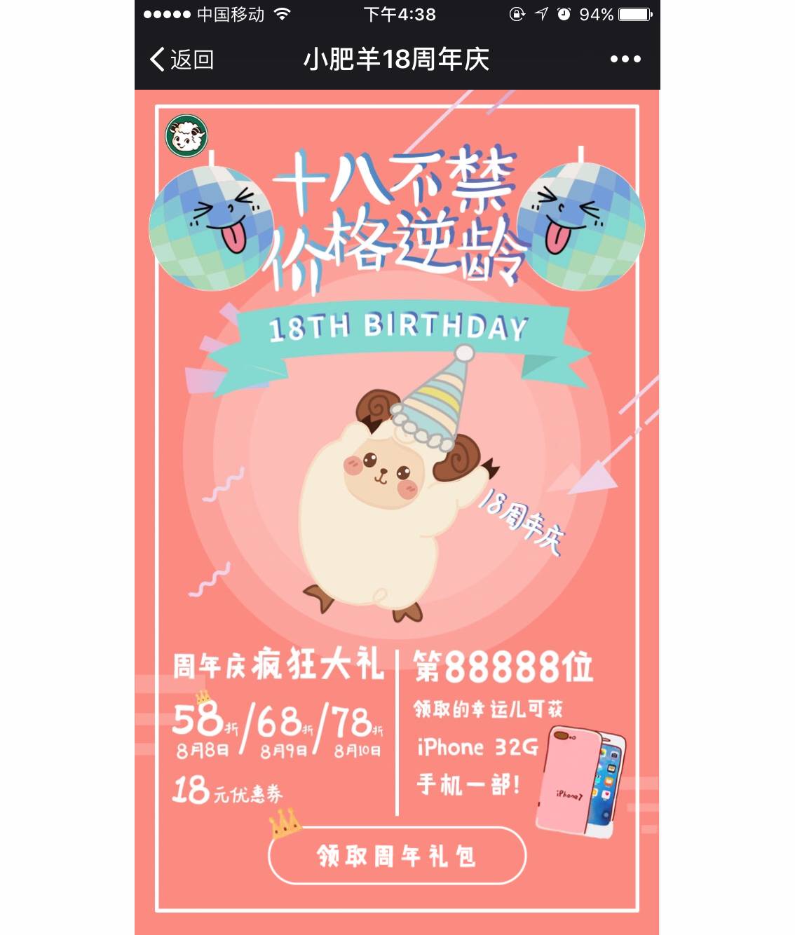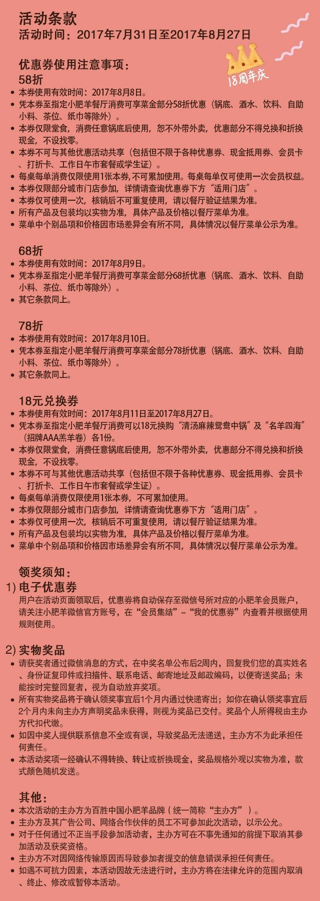 萌萌噠小肥羊的18周年慶活動,一大波優(yōu)惠等你來認領(lǐng),邊吃邊拿獎,小肥羊讓你分分鐘嗨起來!一年僅此一次,錯過了可別怪小怪沒告訴你哦。