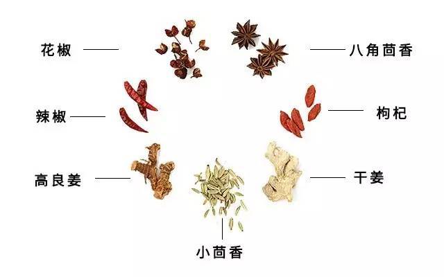 甘肅民勒小茴香,廣西玉林八角茴香,云南羅平干姜,廣東湛江高良姜,河北冀州天鷹椒,陜西韓城花椒,寧夏中寧枸杞共同搭配,天然顏值和味道,久涮不淡好湯底。