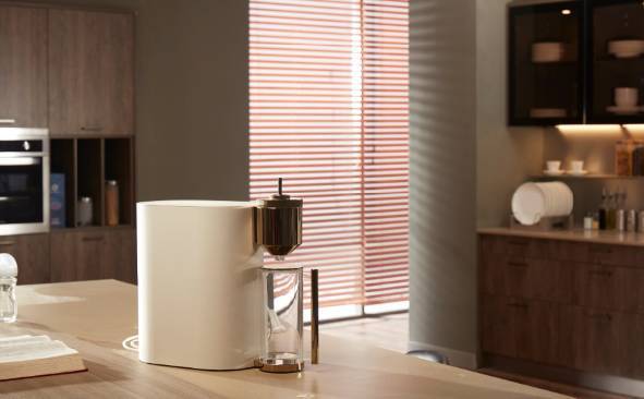思丹集凈水機、熱水壺、冷水瓶及保溫瓶于一體,極大的節(jié)省了廚房臺面空間。