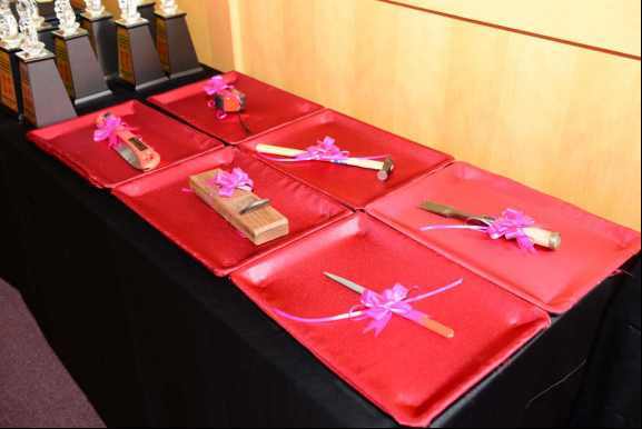 金牌導(dǎo)師們另授與學(xué)生六藝,即“魯班尺、木槌、鋸、刨刀、鑿刀、銼刀”精工技藝工具,象征傳承設(shè)計(jì)職業(yè)的匠心精神,一筆一劃,一刀一斧皆具匠心。這份沉甸甸的禮物,寄托了兩岸設(shè)計(jì)師們對(duì)莘莘學(xué)子的期待,作為設(shè)計(jì)行業(yè)的未來之星,希望他們能以兩岸、東西方設(shè)計(jì)與技藝的傳承與融合為前進(jìn)動(dòng)力,學(xué)業(yè)志向。