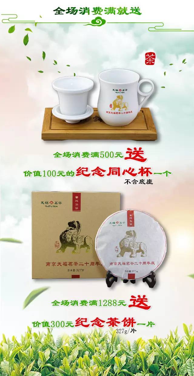 2:消費(fèi)滿(mǎn)500贈(zèng)送紀(jì)念同心杯一個(gè)及滿(mǎn)1288贈(zèng)送紀(jì)念茶餅一片的活動(dòng)可與文中其他活動(dòng)同享但不可累計(jì)贈(zèng)送!