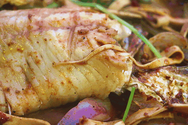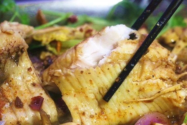 用筷子翻開,嫩滑的魚肉就蹦了出來(lái),魚肉香辣可口,入口即化,超滿足!