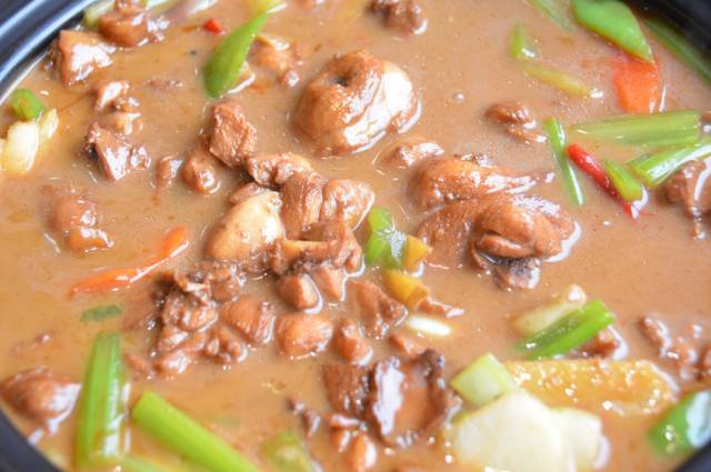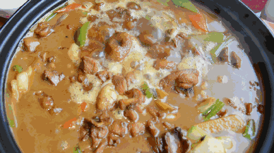 三用的地秘制的雞公煲醬料熬制的長達(dá)八個(gè)小時(shí)。四是盛器好一個(gè)砂煲就要一百多元,不僅比熱高保溫好,讓你長時(shí)都能吃到熱乎乎的暖心暖胃美食。
