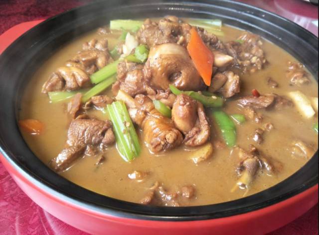 這道菜可以不但是吃大米飯的好搭檔。而且當(dāng)雞肉全部吃完后你還可以讓店家免費(fèi)加湯用來涮菜下面條。