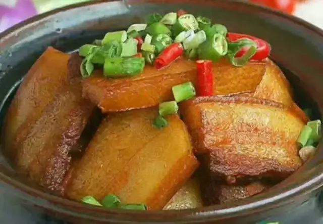 選用上好的五花肉,先腌制三天,浸味兒后燜制三小時(shí),肉質(zhì)口感,肥而不膩,松軟可口,這個(gè)肉做起來比較費(fèi)事兒,第二天才能吃到嘴里。