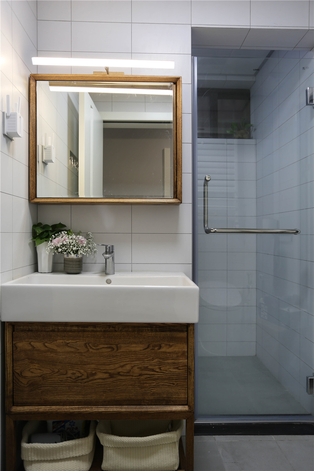 △衛(wèi)生間干濕分區(qū),定制的實(shí)木洗漱臺(tái)有著木質(zhì)的溫潤。