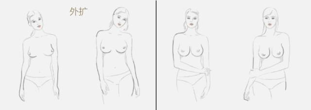 每個人的胸型都有差別,是不可以一概而論的,不過我們還是可以比較不同胸型,看看什么樣的胸更偏外擴一點。