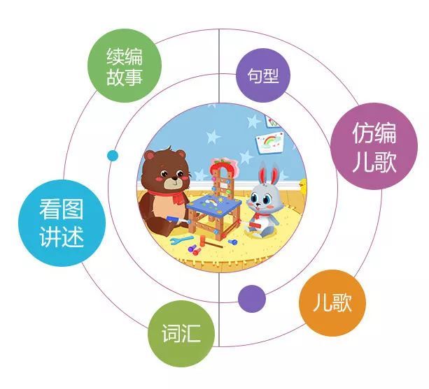 趣味表達(dá)通過看圖講述,兒歌,詞匯,仿編兒歌,句型,續(xù)編故事等,幫助幼兒逐步達(dá)到“完整流利的口頭表達(dá)能力”。