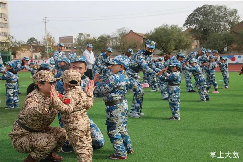 為了全方位開發(fā)孩子的多種能力,幫助幼兒認(rèn)識了解中國的強(qiáng)國、強(qiáng)軍夢,從而促使萌發(fā)幼兒熱愛祖國的情感。大荔縣超前幼兒園于11月18日早上,在北大操場開展了親子軍事演練活動,超過700多名家長與寶寶一起進(jìn)行了集體親子活動,親身體驗、感受親子活動的意義和快樂。