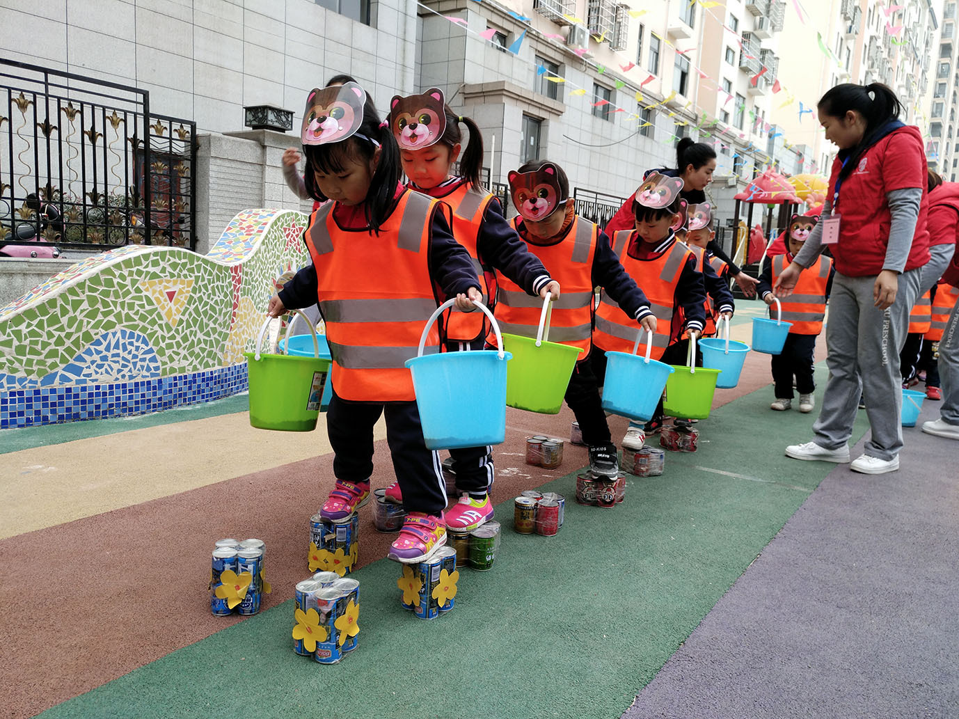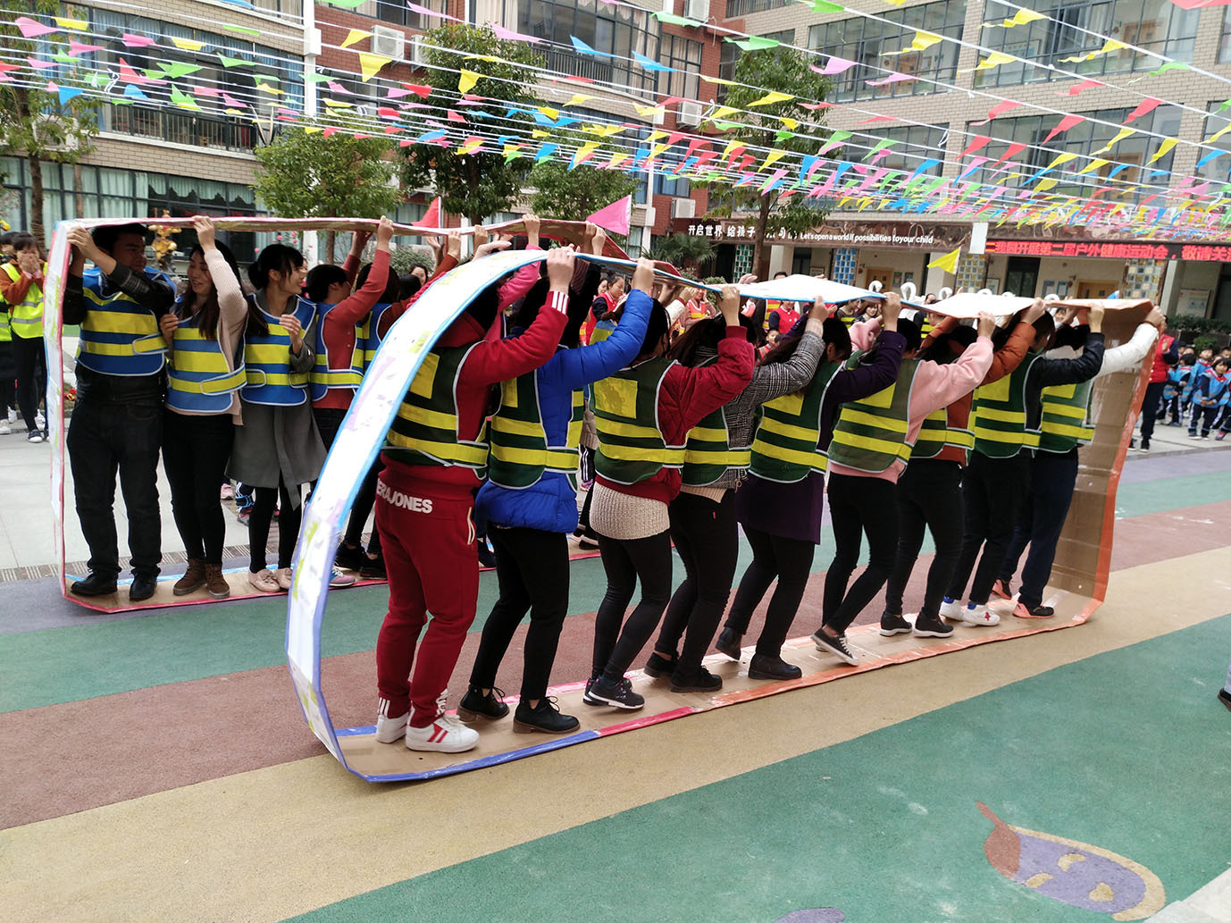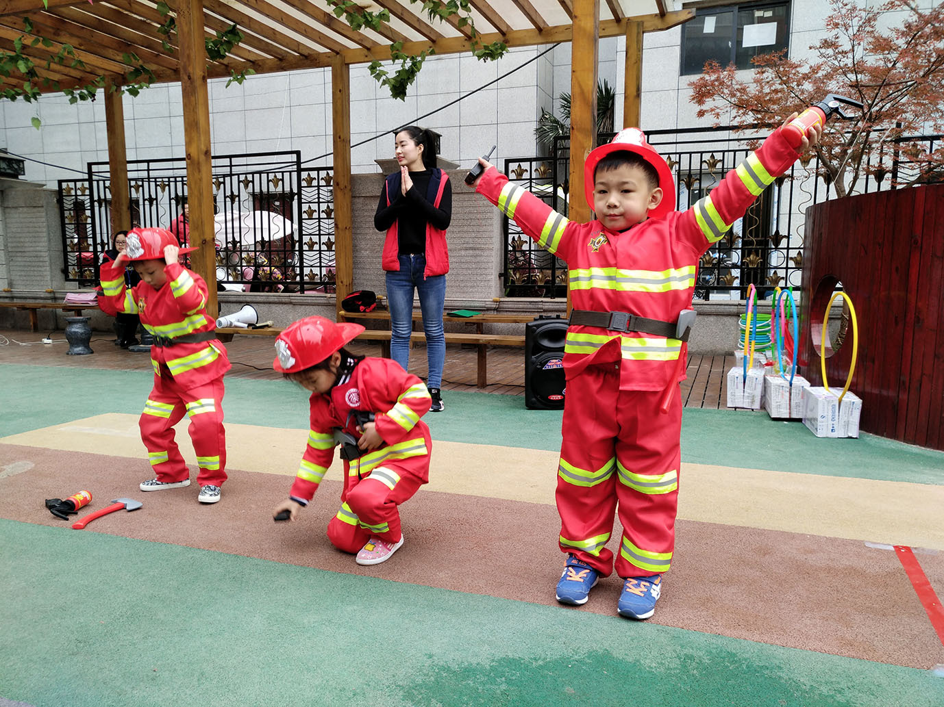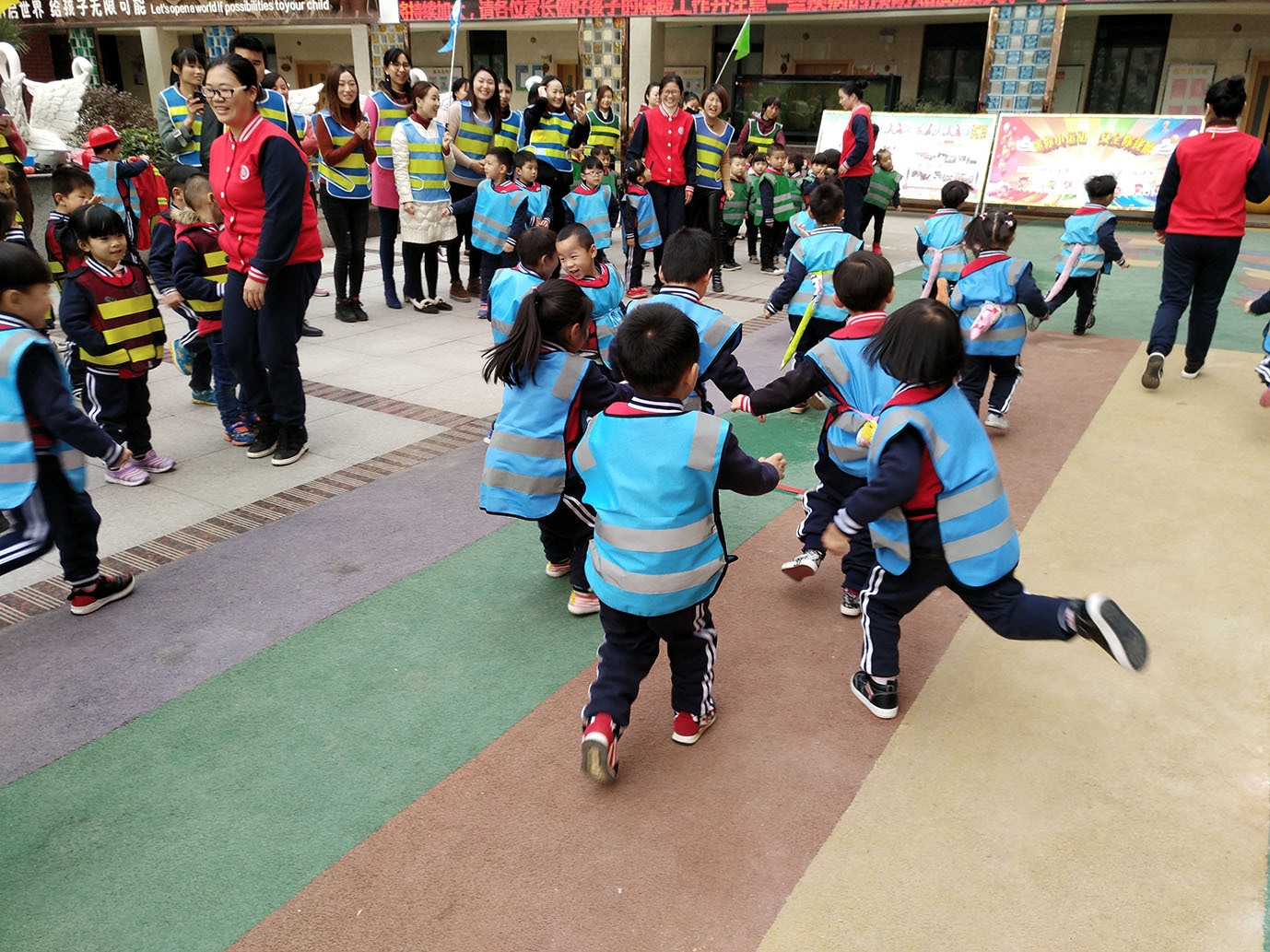 接著伴隨著鏗鏘有力的“運動員進行曲”,孩子們手持五顏六色的拉彩旗,邁著整齊有力的步伐,喊著響亮的口號,身著統(tǒng)一定制的安全衣,神采奕奕地出現(xiàn)在運動場上。精心設(shè)計的運動游戲在鼓勵孩子運動四肢,感受運動快樂的同時,更融合了幼兒園多元文化的特色,每個器械不僅巧妙的融入走、跑、跳、爬等幼兒必須發(fā)展的基本動作,還重點突出了安全運動的主題,各項比賽項目中有來源于蒙氏教育的走線線上運動、不僅凸顯特色教育更體現(xiàn)了調(diào)節(jié)身心發(fā)展的健康教育,有休閑游戲打地鼠、斗智斗勇的“無敵風(fēng)火輪”、考驗在緊急情況訓(xùn)練孩子反應(yīng)力的“百變防護衣”和紅綠燈交通安全等運動項目。活動還設(shè)置了親子游戲,在消防接力賽中,媽媽爸爸們和孩子一起接力消防栓,將安全意識傳遞。本次活動幼兒園還為每位孩子們準(zhǔn)備了安全紀(jì)念品,并講解在生活中的自救意義,精致的防火用具模型讓孩子們愛不釋手同時提高了自我保護能力。最后運動會以家園共唱《安全之歌》的形式將活動推向高潮。
