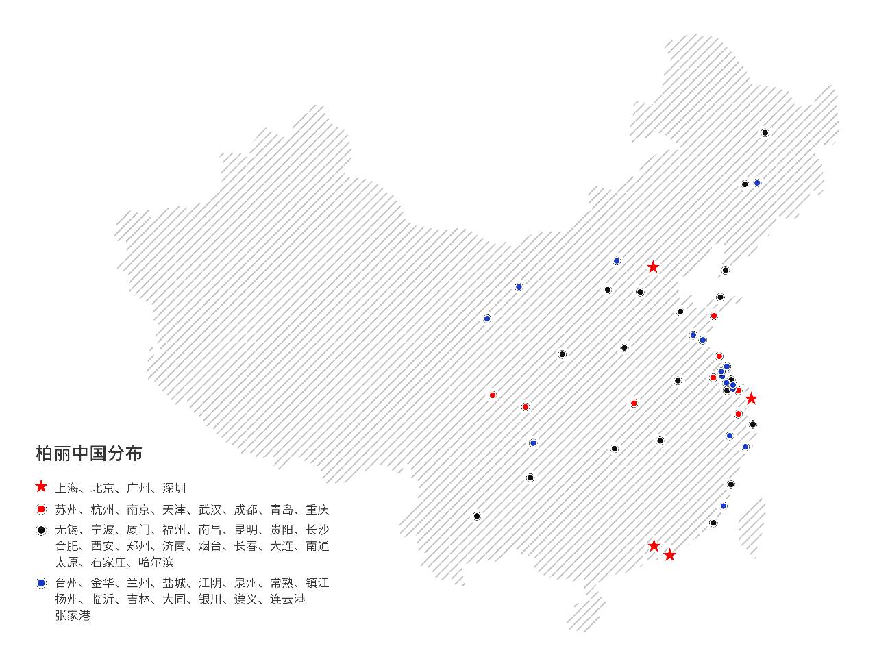 超過(guò)300個(gè)高端項(xiàng)目案例,覆蓋全國(guó)53個(gè)城市,近60家展廳,落腳北京、上海、廣州、深圳、寧波、南京、成都、無(wú)錫、煙臺(tái)、大連、鄭州、昆明等多個(gè)核心區(qū)域,在20年的奔跑中,店面在華北、華東、華南、中西部四大區(qū)域全方位鋪設(shè),已經(jīng)成為柏麗步履堅(jiān)實(shí)的最好印證。