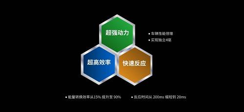 第二是超高效率。大家知道,用傳統(tǒng)的汽車所帶來(lái)的效率,油燃燒出來(lái)的效率,傳遞到力大概是19%的效率,有70%變成熱,百分之十幾變成噪音,而新能源汽車從電池轉(zhuǎn)化成動(dòng)能的效率是90%。