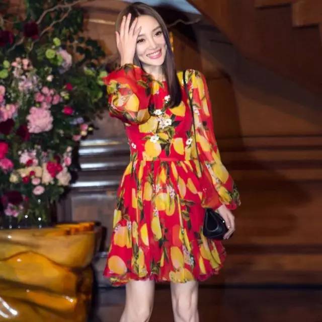 李小璐這件紅色與黃色的搭配很有西紅柿雞蛋的感覺,但是本身衣服百褶裙什么的還是比較減齡俏皮