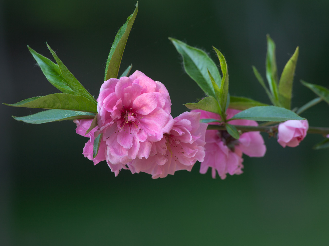 懂得栽培的人知道,那葉子和枝干樹皮的設(shè)計(jì),是為了保持水分,讓碧桃的枝葉,在海棠被焗傷曬死的三伏天,依然能昂首挺胸、迎風(fēng)笑傲,頂著驕陽(yáng),給焦灼干渴的大地潑出片片綠洲,描畫彎月娥眉,撲出片片粉腮,架起七彩虹橋……