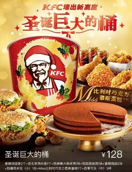 在全國(guó)11個(gè)主要城市的200多家肯德基門店,都能買到圣誕“巨大的桶”!