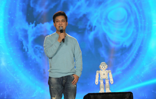 “村長(zhǎng)”李銳帶著阿爾法機(jī)器人震撼登場(chǎng),趣味上演繞口令人機(jī)對(duì)決,眼睛耳朵的舞臺(tái)背景,絢爛璀璨的舞美燈光,讓現(xiàn)場(chǎng)充滿(mǎn)濃郁的“未來(lái)時(shí)代”科技感氣息。