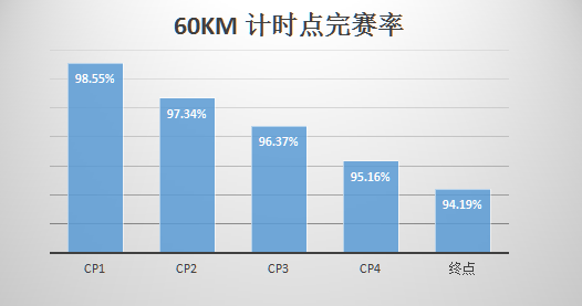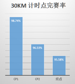 分析全場(chǎng)賽事的打卡率發(fā)現(xiàn),半程組完賽率95.58%,全程組完賽率94.19%,整體完賽率高達(dá)94.79%,這離不開(kāi)組委會(huì)賽前對(duì)線路的難度反復(fù)斟酌,賽中組織安排合理、補(bǔ)給到位,給所有選手一個(gè)愉快、舒心、安全的參賽體驗(yàn)!