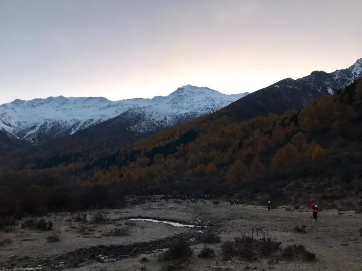 11月4日凌晨時(shí)分,四姑娘山所在的這片大地仍處在寒風(fēng)凜冽的黑暗天幕籠罩之下,只有起點(diǎn)附近的一抹亮光提醒著晨曦不要遲到。