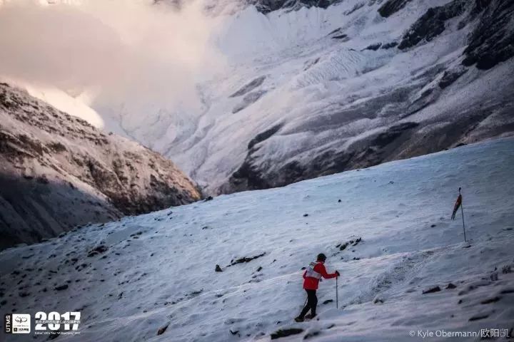 就這樣跌跌撞撞了不知過了多長(zhǎng)時(shí)間,“Garmin Fenix 5” 終于傳來了一下震動(dòng)反饋,謝天謝地走完了1公里,低頭一看時(shí)間,天吶!!!1公里用時(shí)34分48秒!這1公里的下坡竟然比攀登雪峰還慢了10分鐘。這時(shí)候我心想不妙了,按照這樣速度耗下去,CP3被不被關(guān)門都是未知之?dāng)?shù)。然而,除了穿越雪峰的速度緩慢外,還有另外一個(gè)更嚴(yán)重的問題——嚴(yán)寒。防寒帽必須拉過耳朵,圍巾必須蓋上鼻子,只有靠著嘴里呼出的熱氣,鼻子才不至于完全凍僵失去知覺。