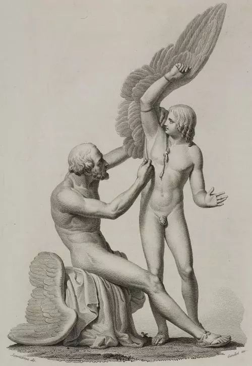 話說,“代達(dá)羅斯”是希臘最享譽(yù)盛名的能工巧匠,他最著名的杰作便是為“克里特島”的國(guó)王建造了一座迷宮,困住了牛頭人身的怪獸“彌諾陶洛斯”。但當(dāng)他思念故鄉(xiāng)雅典的時(shí)候,國(guó)王卻不愿意放他走,封鎖了陸路和海路。“代達(dá)羅斯”為了離開,只好暗自收集島上的羽毛,并用蜜蠟粘接起來。終于有一天,他成功地為自己和兒子“伊卡洛斯”制作了能夠翱翔天際的翅膀。臨行之前,他叮囑兒子:“你要當(dāng)心,必須在半空中飛行。如果飛得太低,羽翼會(huì)碰到海水,沾濕了會(huì)變得沉重,你就會(huì)被拽在大海里;要是飛得太高,翅膀上羽毛的蜜蠟會(huì)因靠近太陽而融化,你也會(huì)摔下來。”父親一邊說,一邊用他微微地發(fā)抖的手,把羽翼安穩(wěn)地縛在兒子的雙肩之上。最后,他擁抱著兒子,還給了他一個(gè)鼓勵(lì)的吻,隨后父子兩人騰空而起。飛過陸地,越過大海……天空的自由令“伊卡洛斯”忘乎所以,他越飛越高,后來自然是不可避免的墜落悲劇。
