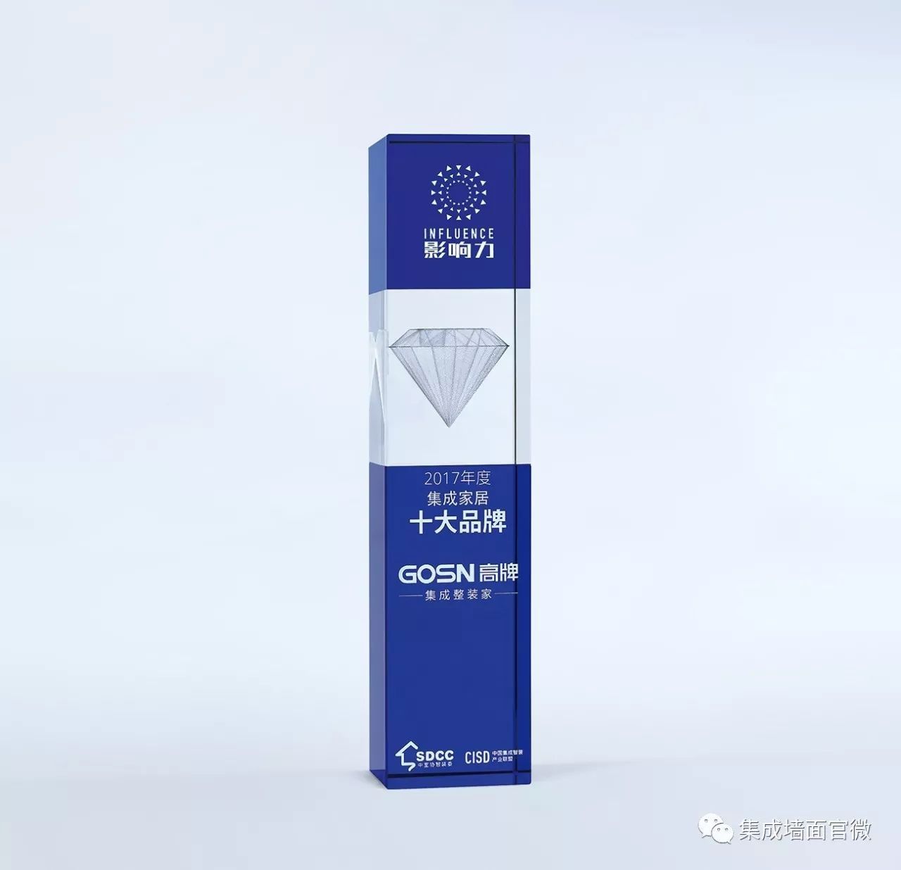 在影響力品牌頒獎盛典上,高牌集成整裝家榮獲“2017年度集成家居十大品牌”的稱號。