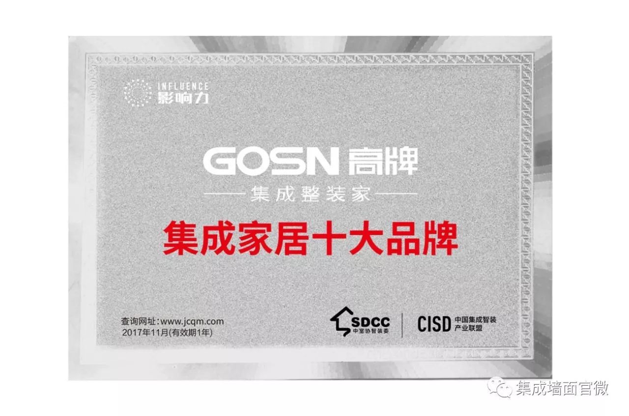 原標(biāo)題:高牌集成整裝家榮獲“2017年度集成家居十大品牌”