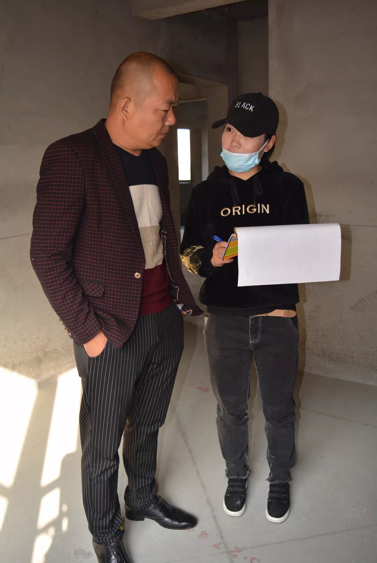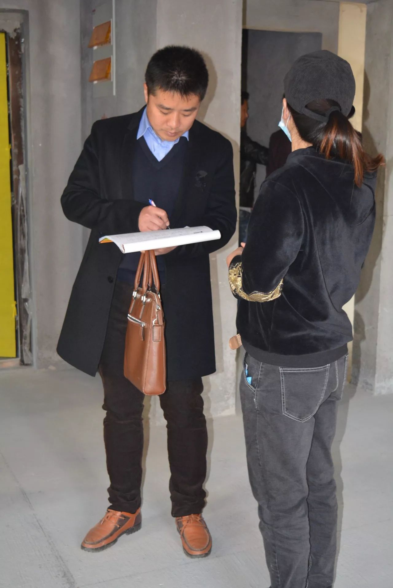 ▲交底結(jié)束,業(yè)主吉先生與工程部梁經(jīng)理分別在施工圖紙和《客戶私化服務流程圖》上簽字確認。