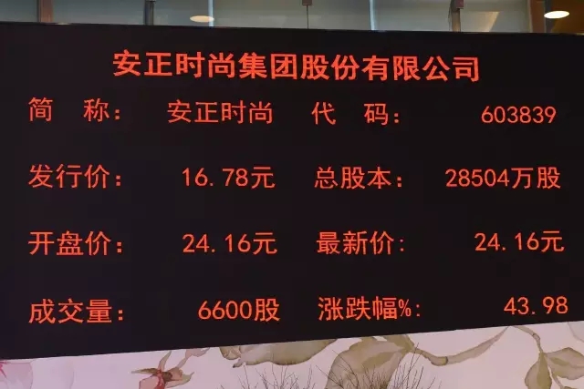 資料顯示,安正時尚發(fā)行價格為每股16.78元,募集資金總額為11.15億元。海通證券預(yù)計公司2017年至2018年每股收益分別為0.92元、0.98元,給予公司2017年25倍至35倍市盈率。