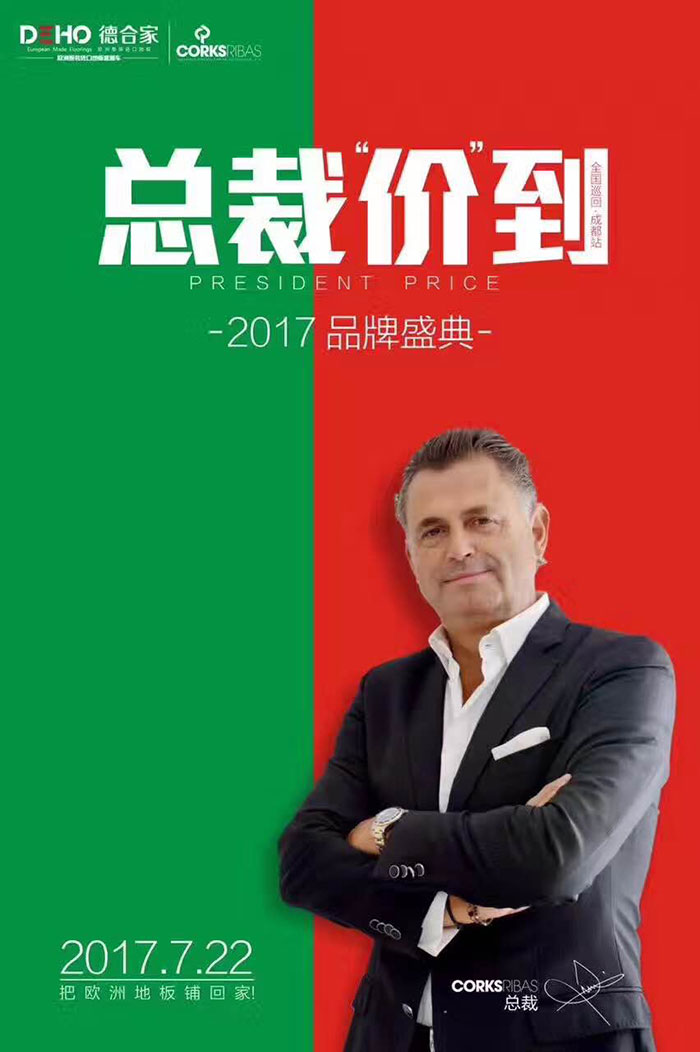 歐洲進(jìn)口地板運營商德合家,近期舉辦了【總裁價到】活動,邀請葡萄牙軟木地板 Corksribas 總裁 José Pedro Oliveira 先生光臨成都、上海專賣店,進(jìn)行現(xiàn)場簽售活動。同時,德合家上海專賣店盛大開業(yè)。本次上海的兩家專賣店分別在宜山路喜盈門地材中心和真北路紅星美凱龍1號館開業(yè)。